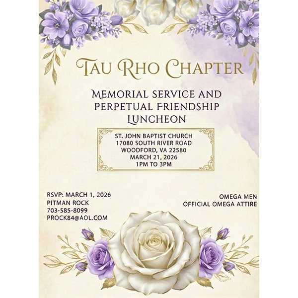 We are honored to have you visit our chapter's website. The Tau Rho Chapter was chartered on December 7, 1964, in Fredericksburg, VA, and is dedicated to creating a positive impact within our community through service, empowerment, and leadership. As we strive to uplift those around us, we focus on addressing the unique needs of our service areas, fostering strong connections, and inspiring change.