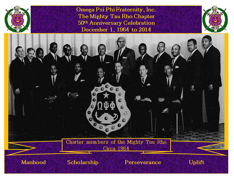 Currently, the Tau Rho Chapter is led by Brother Madrice Hamn. Past leaders (in descending order) include: Brothers Tracy Whitehurst, Norris Arceneaux, Terry Lee, Pitman Rock, Lyndon Roane, Antonio Samuel, Douglas Carter, John Easley, Thomas Parker, Joshua Thomas, Jesse Taylor, Raymond Carey, Ronald Jordan, Robert Montgomery, Johnny Johnson, Robert Laws, Nathaniel Young, James Outlaw, Harold Rutherford, Wilbur Chance and Robert Greene. As has been the case throughout its existence, Tau Rho’s membership roster frequently changes from year-to-year. But the source of its strength remains constant: Brothers thoroughly immersed in the ideals of Omega. Indeed, as it anticipates its next fifty years of existence, Tau Rho moves forward with the singular purpose of advancing the noble causes of the Omega Psi Phi Fraternity.